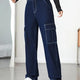 Dusk Blue Central Seamed Wide Leg High Waist Jeans