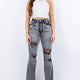 Dusk Blue High Rise Asymmetric Button Zip Fly Ripped Jeans
